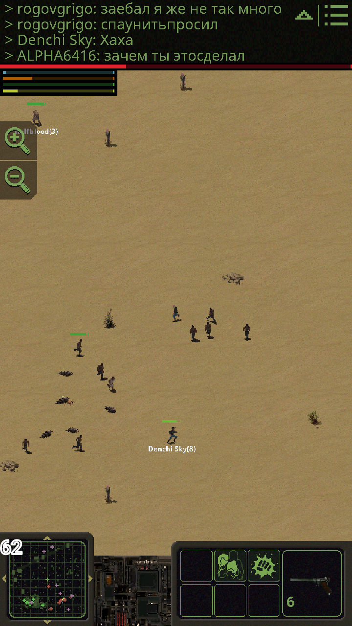 Today, June 19 at about 22:00-22:08 me and two other players ware attacked by low level player who spawned a horde of brawlers and affected our farming.Me and two other players (named Hatred and rogovigrigo) three times walked to another map in order to wait him to calm down. Tree times he "aimed" that horde into us. Finally I was killed. I wasn't able to protect myself. I lost much exp. The more we angry and helpless we were the more pleased was that guy Denchi Sky. Sending three screenshots with translations from russian.